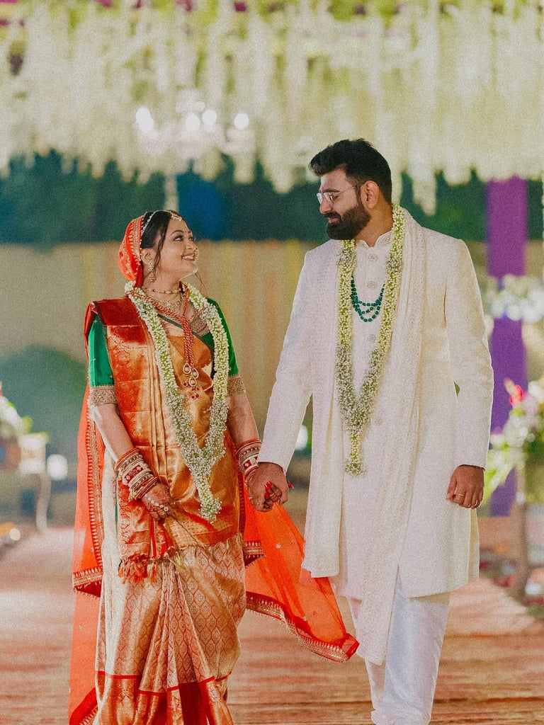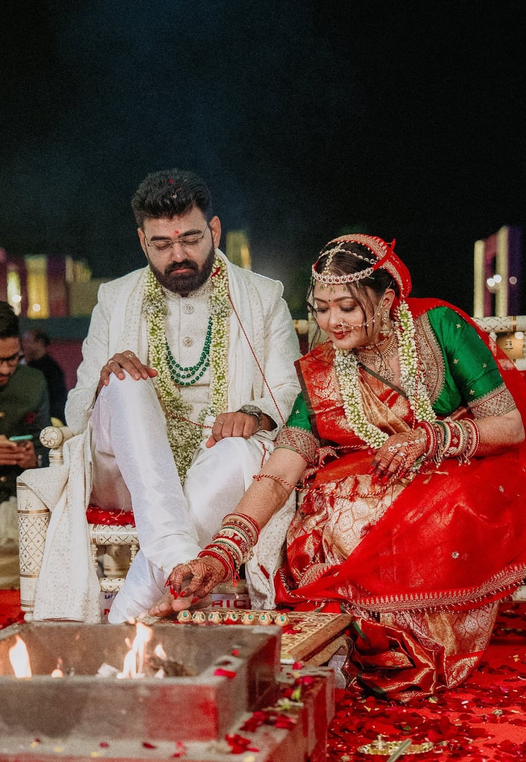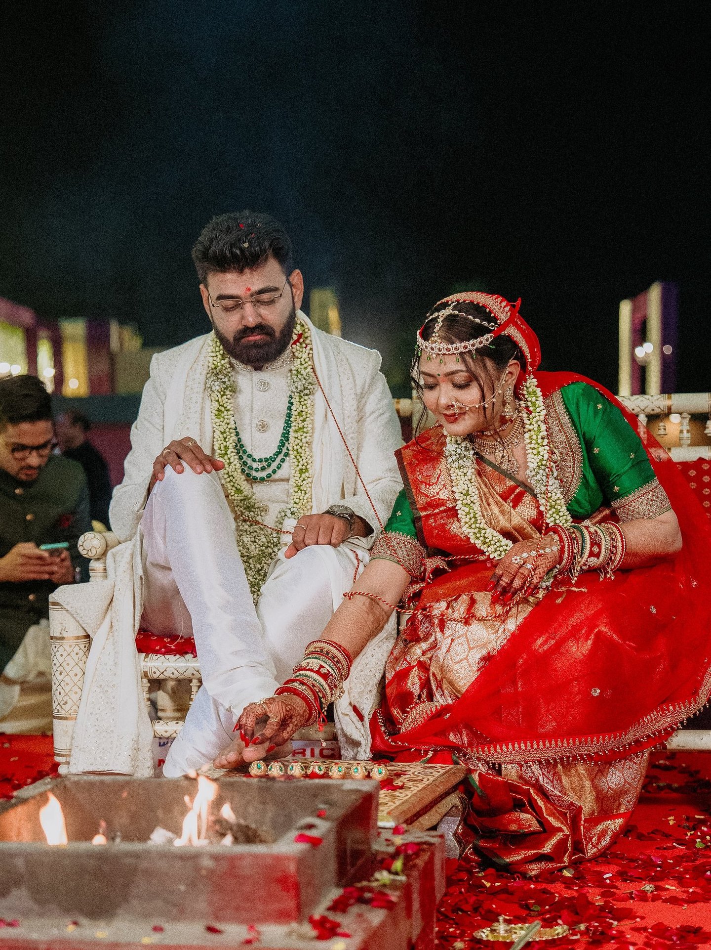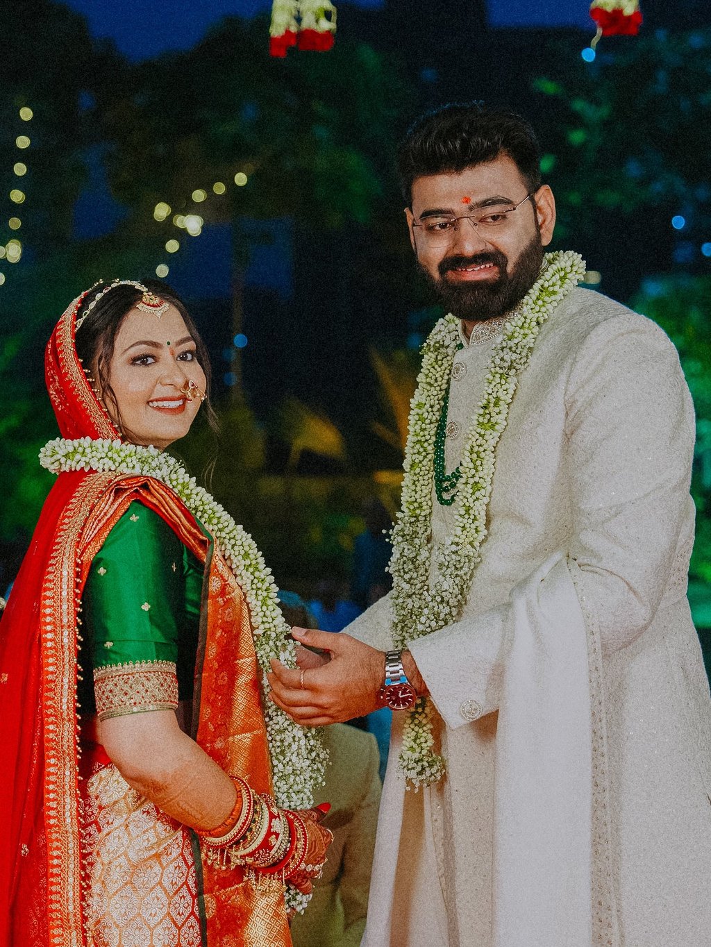 On the wedding day, Aesha looked stunning in her bridal attire, her look completed by soft makeup and traditional jewellery, radiant traditional hues, carried a graceful charm, while Shravil’s eyes never left her side.