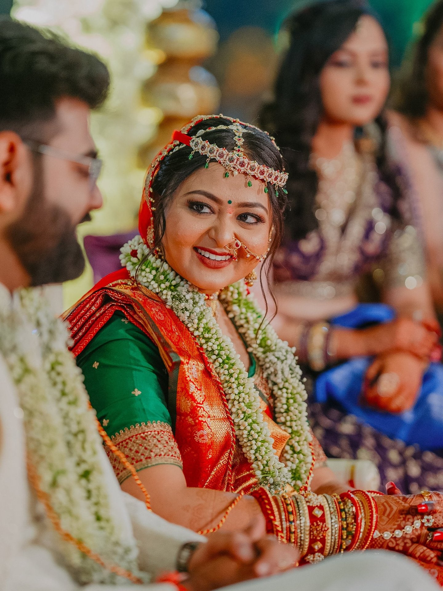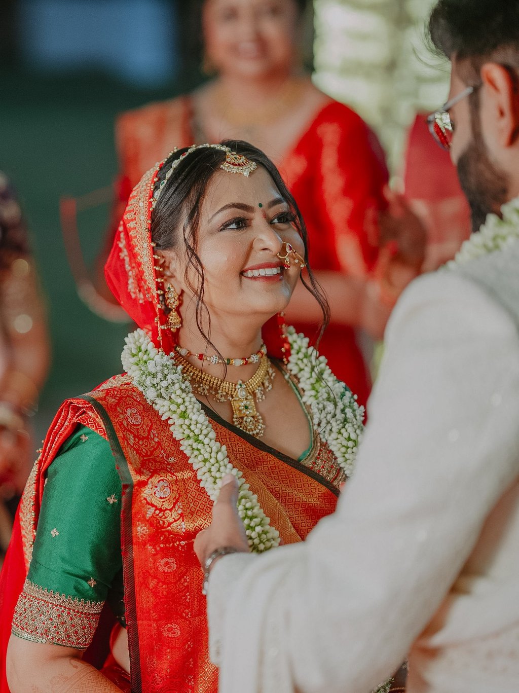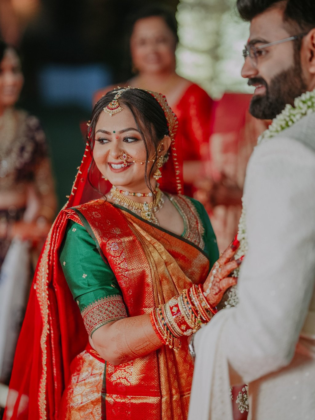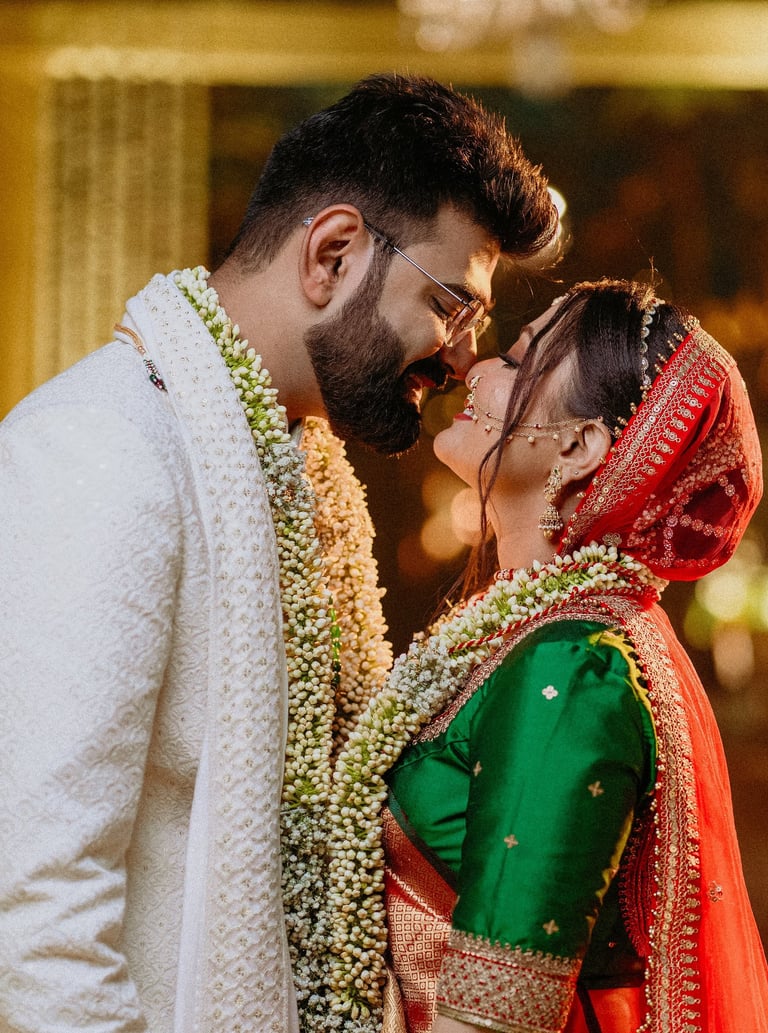 On the wedding day, Aesha looked stunning in her bridal attire, her look completed by soft makeup and traditional jewellery, radiant traditional hues, carried a graceful charm, while Shravil’s eyes never left her side.