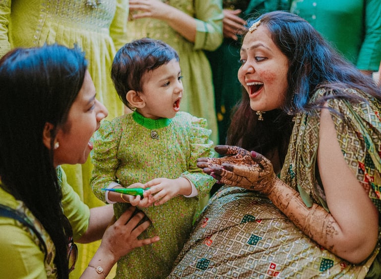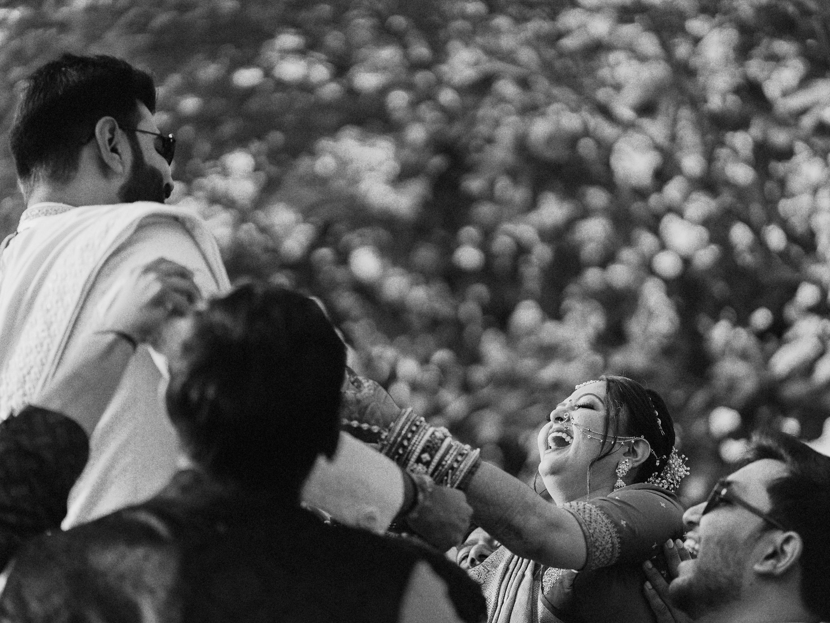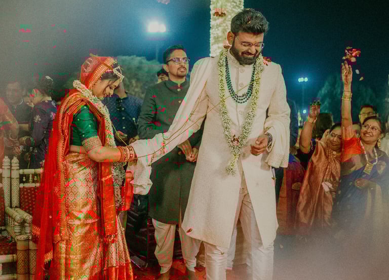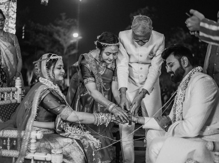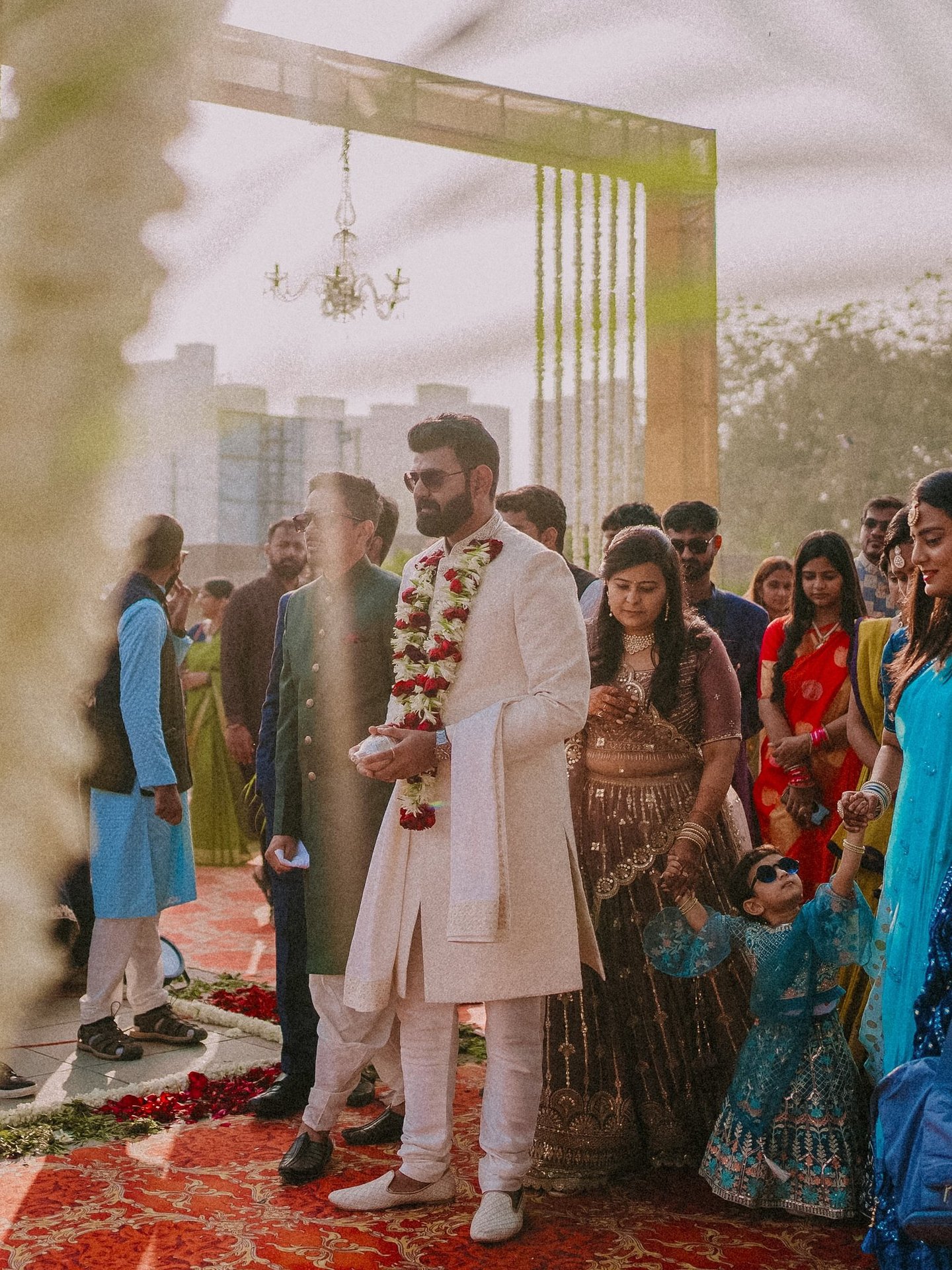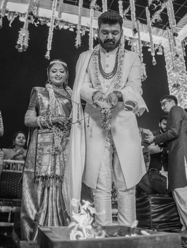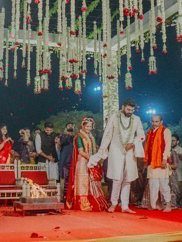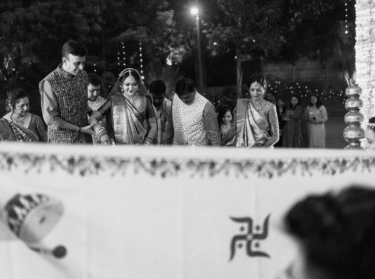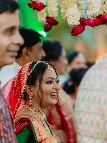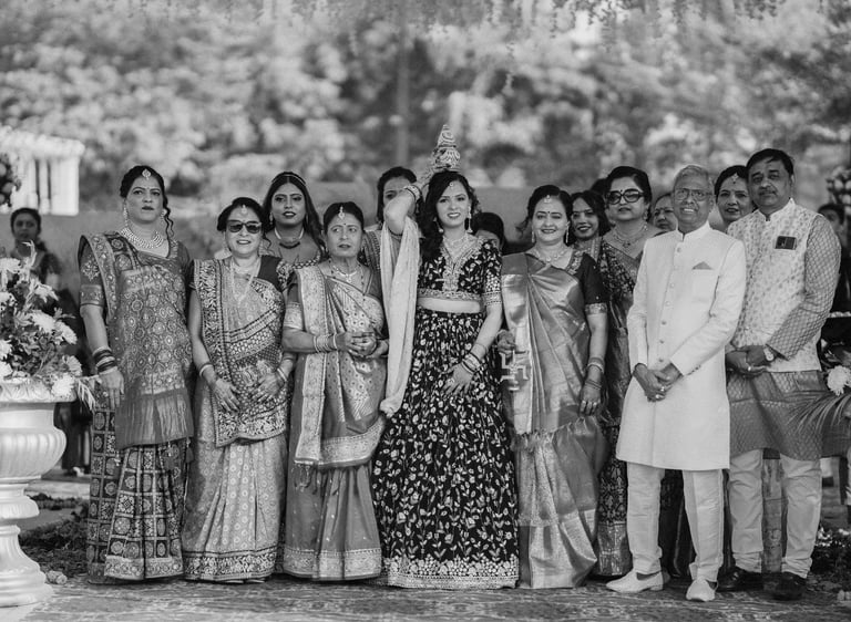 The ceremony was steeped in traditional Indian rituals. From the emotional moments during the pheras to the joyful chaos of the baraat. Expressions of love, blessings, and excitement filled the atmosphere as family members and guests became part of the visual storytelling.We focused on documenting not just the big rituals, but also the in-between glances, the tight hugs, the playful cousins, and the quiet pride in a father's eyes the unscripted magic that makes a wedding truly timeless.