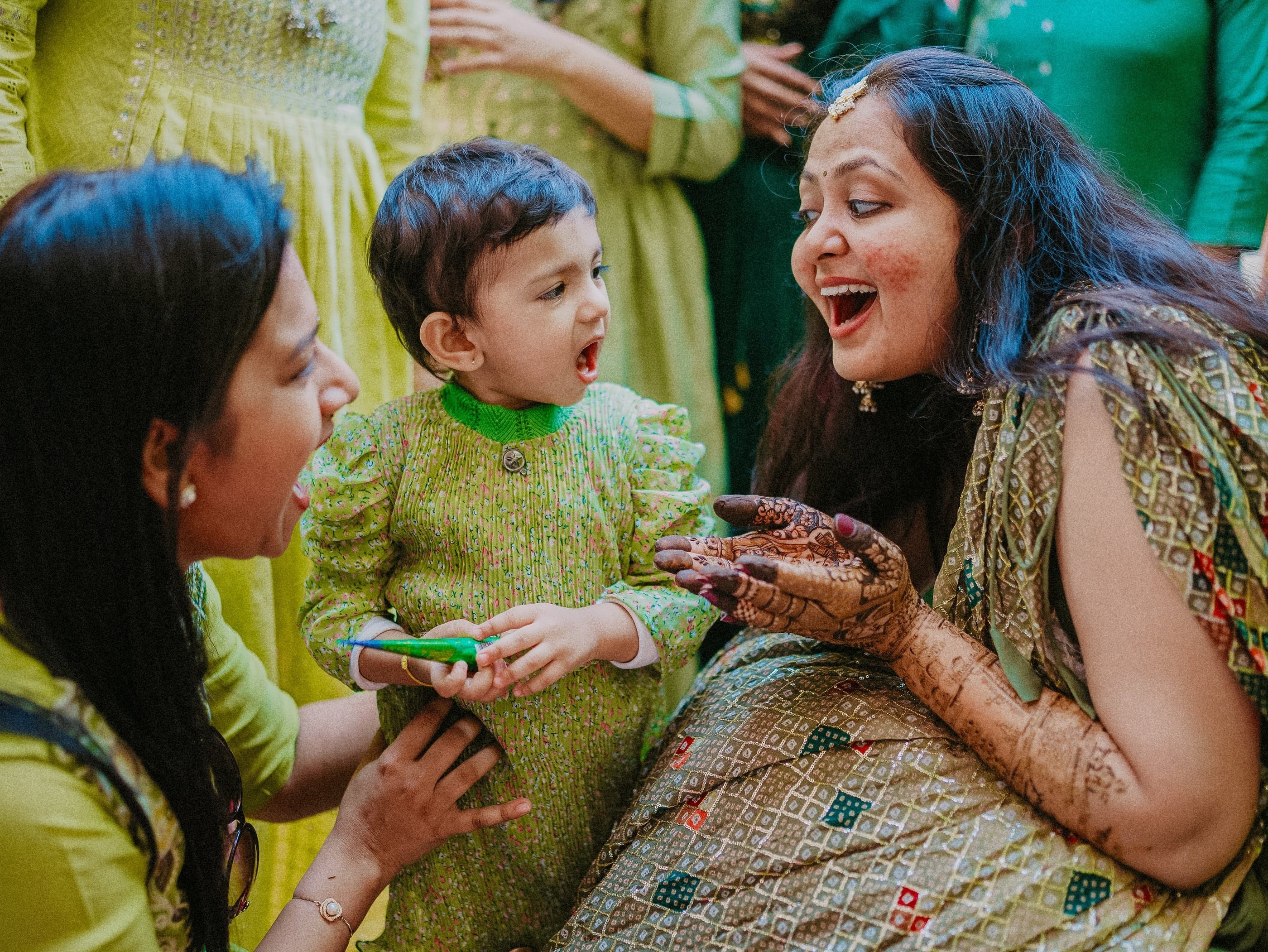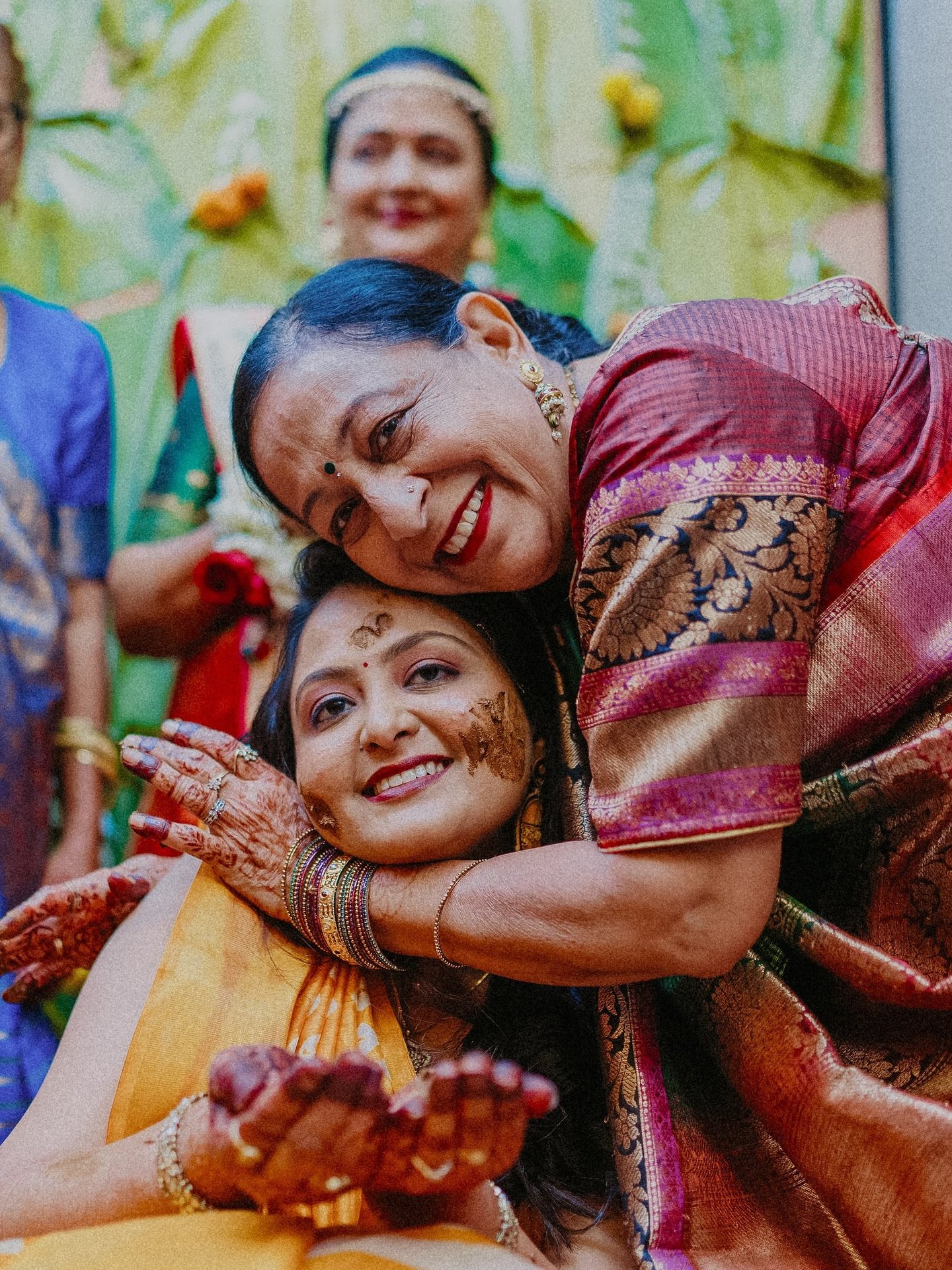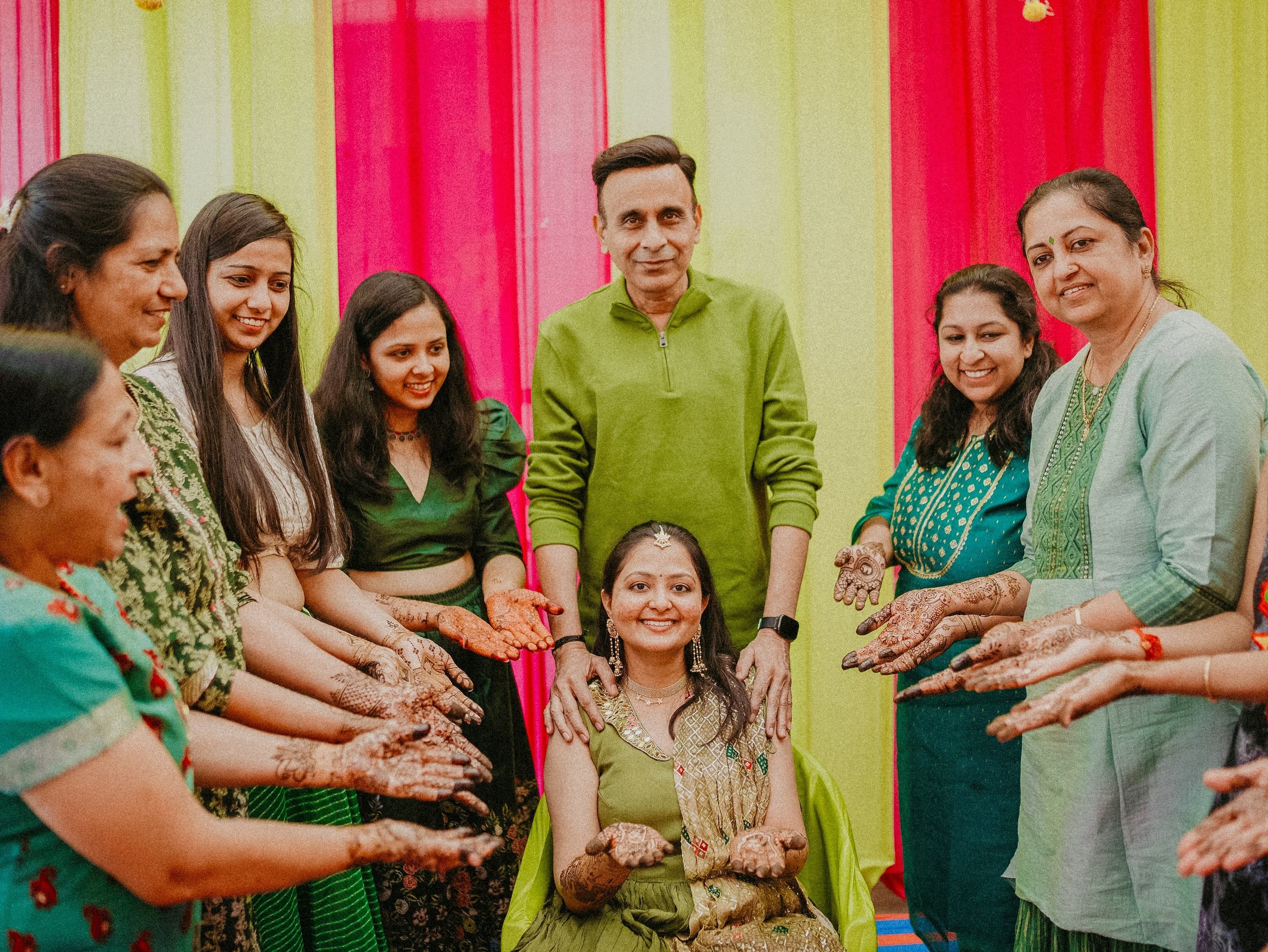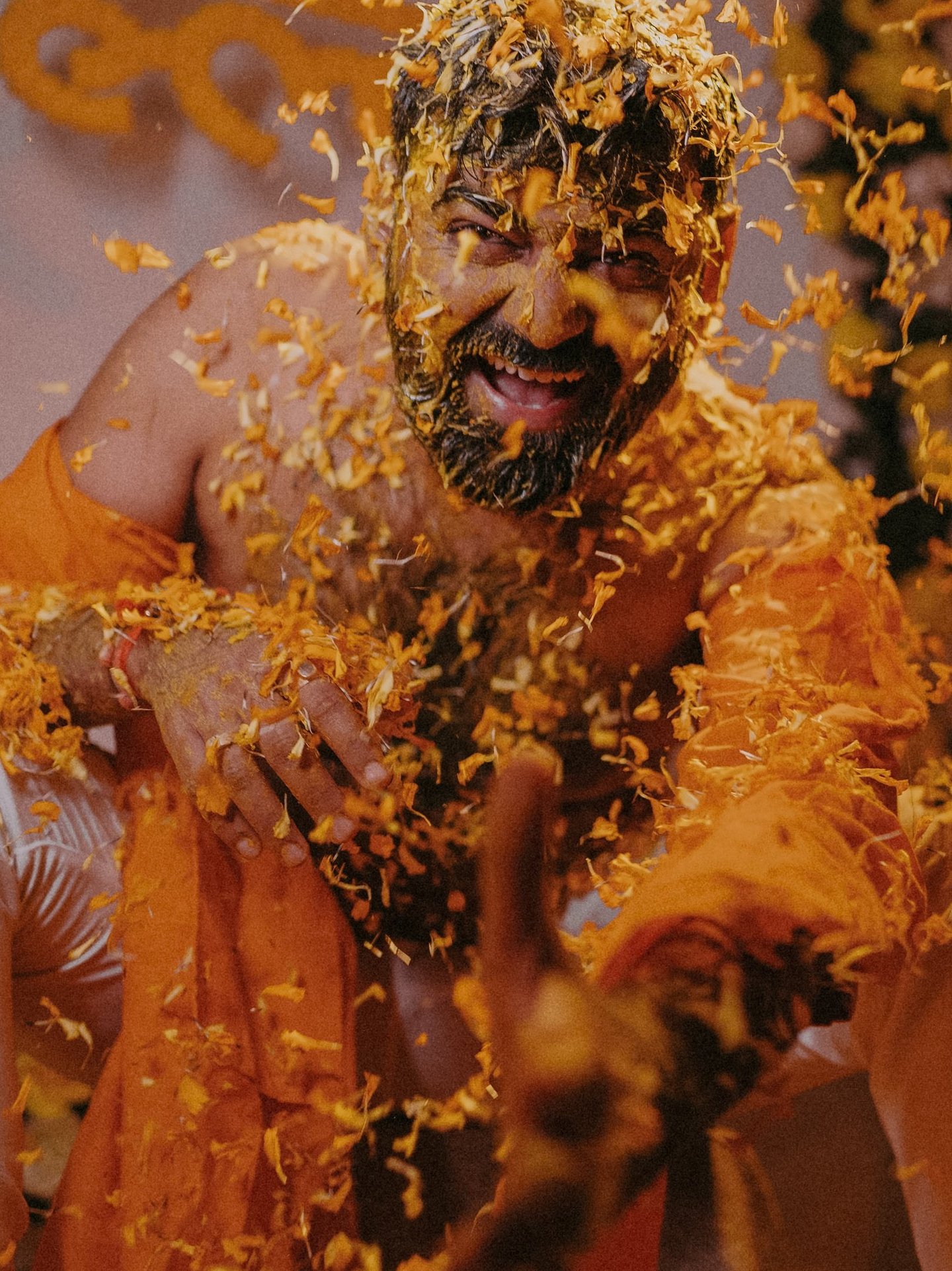 A joyful haldi ceremony surrounded by friends and family, the couple glowed with excitement as turmeric, laughter, and music filled the air.